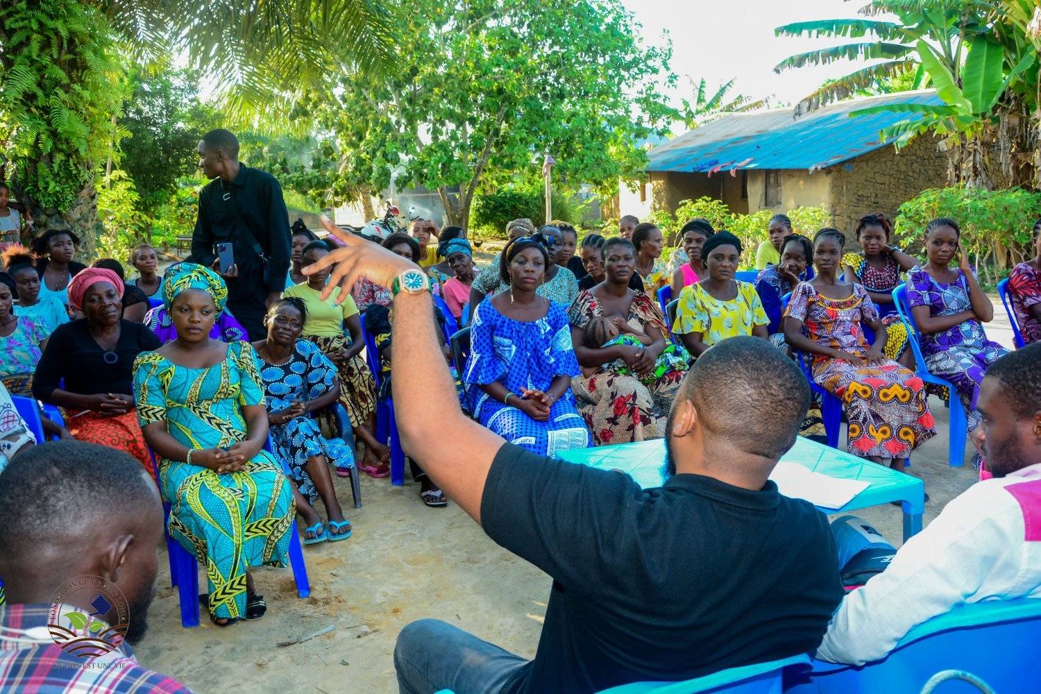 Contrairement à tous les déroulements précédents du projet ELIKYA à l'égard des mamans, cette fois-ci c'est la fondation Guy RAMY LONIA par le truchement de son président fondateur, accompagné de ses adeptes qui a effectuée un déplacement vers les mamans de l'entité BOBOKOLI où elle a tenu une séance foraine .