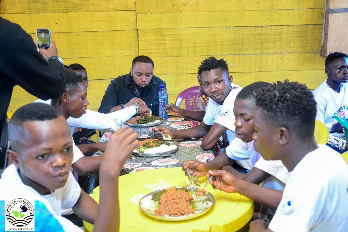 Au delà de cette remise des dons le président fondateur à la personne de GUY RAMY LONIA a partagé le repas de famille comme l'a fait Jésus avec ses disciples . Les cireurs tellement dans la joie et disent merci président GUY RAMY LONIA de penser à nous car on a pas d'importance devant d'autres personnes mais toi tu nous as traîné comme des rois .