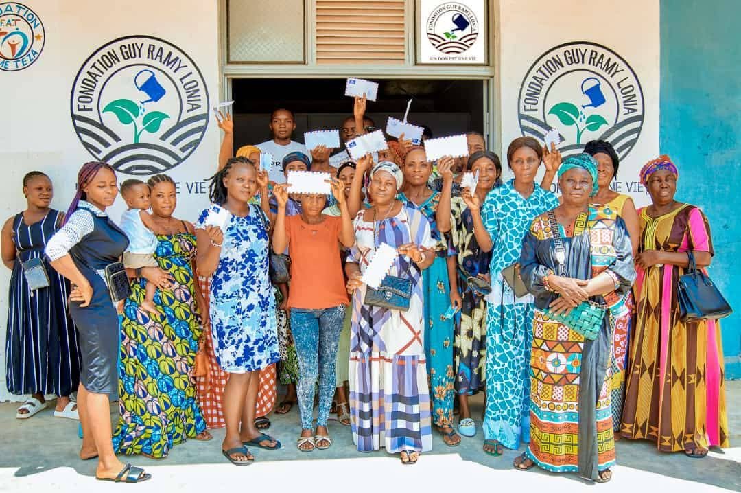 La Fondation Guy Ramy LONIA vient de renforcer les femmes commerçantes à faible revenu ce lundi 27 mai 2024 en remettant des enveloppes à une vingtaine de mamans qui exercent les activités commerciales avec des faibles capitaux pour subvenir aux besoins de leur famille et lutter ainsi contre la pauvreté.