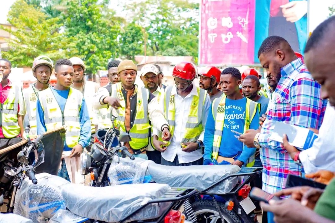 À cette occasion, elle a octroyé à quelques membres de ladite association quatre motos neuves de marque #TVS pour faciliter leur mobilité, ainsi que des téléphones Android neufs leur permettant de rester connectés aux réalités socio-politiques du pays.