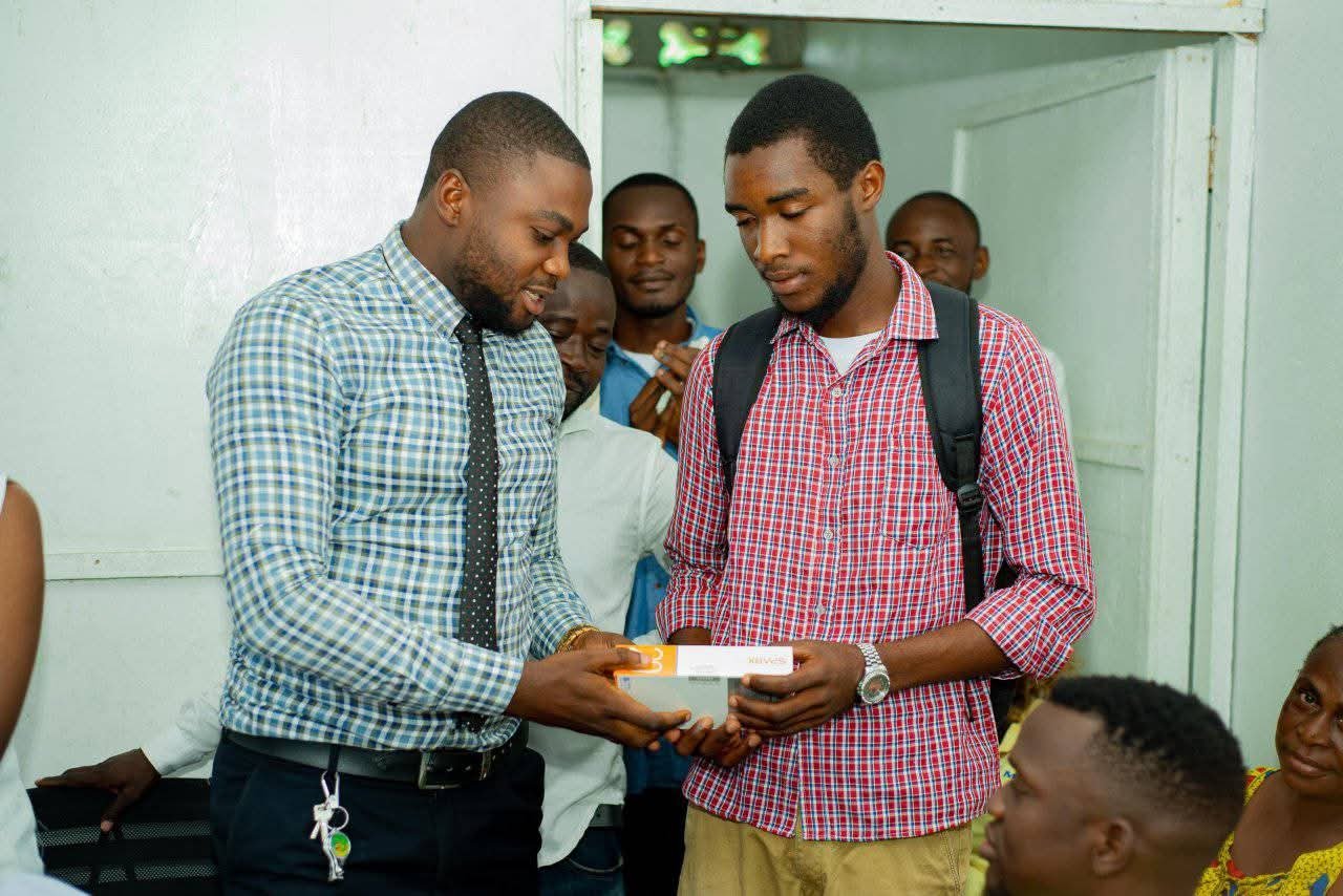 Grâce à son engagement , la fondation Guy ramy Lonia l'a offert un smartphone de la marque spark 20 pour l'aider à progresser dans son activité .
