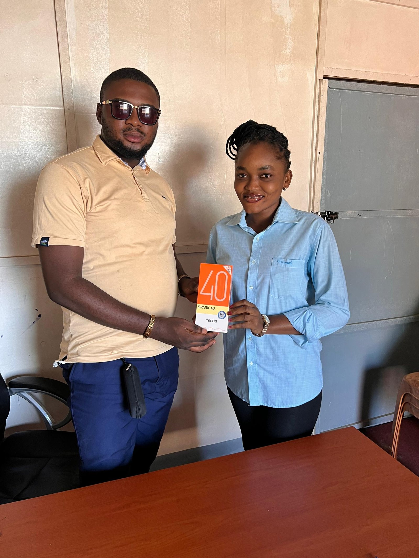 La Fondation Guy Ramy Lonia félicite Nadia Yohali Amisi, gagnante de la 2ᵉ semaine du concours d’expression autour de l’usage du smartphone.